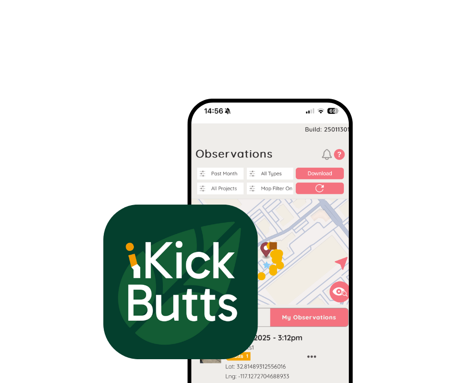 With iKickButts, you can take images and count tobacco product waste while mapping where you find the waste in your community.